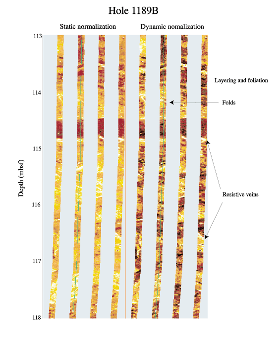 FMS image showing alternating conductive and resistive thin and shallow dipping units from Hole 1189B.